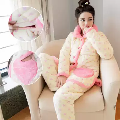 Pregnant women's pajamas Women's autumn and winter thickened and velvet postpartum pregnancy period 12 Breastfeeding padded monthly clothes Winter November 10