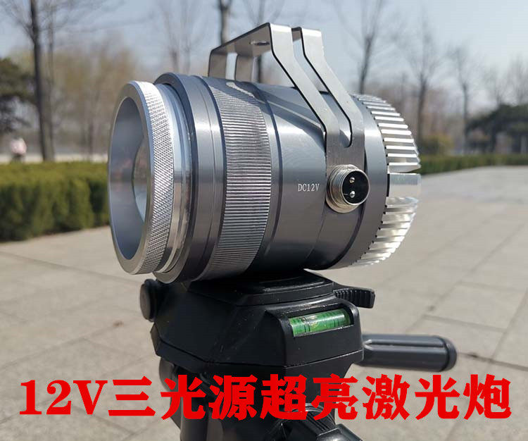 Laser gun fishing light 12V night fishing light Super bright strong light long-range three-light source yellow and white light black pit hernia LED