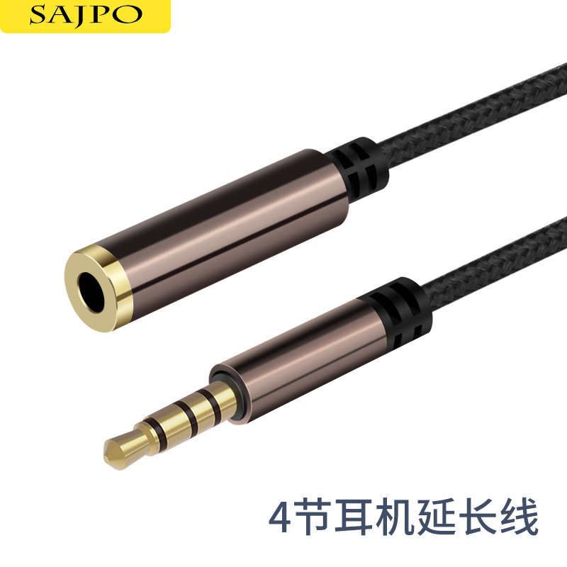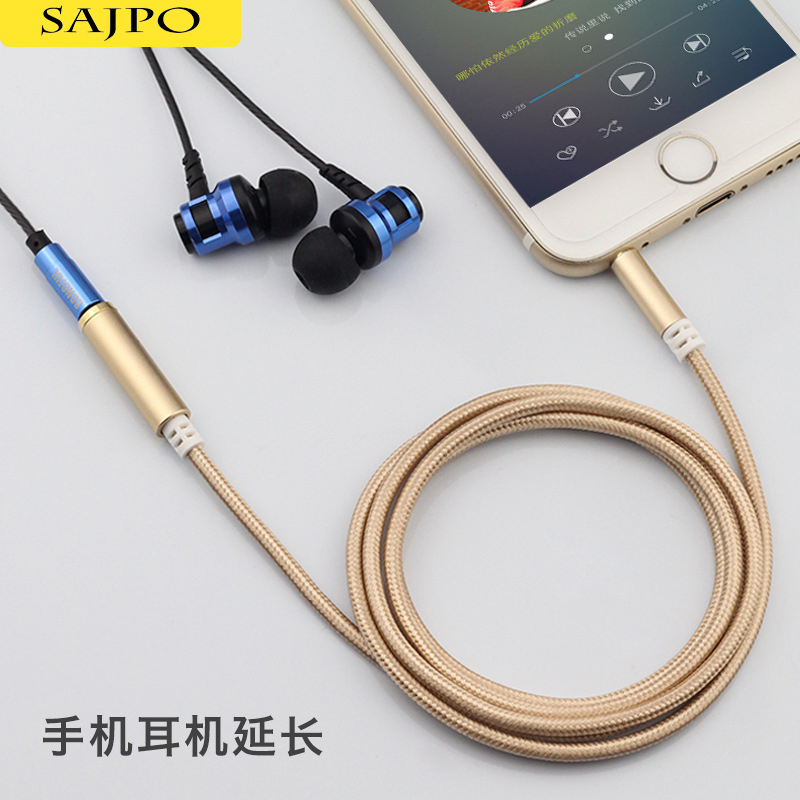 Black gold (threaded aluminum shell knitting) round hole headphones extended line Sauhao gold (threaded aluminum shell knitting) round hole headphones