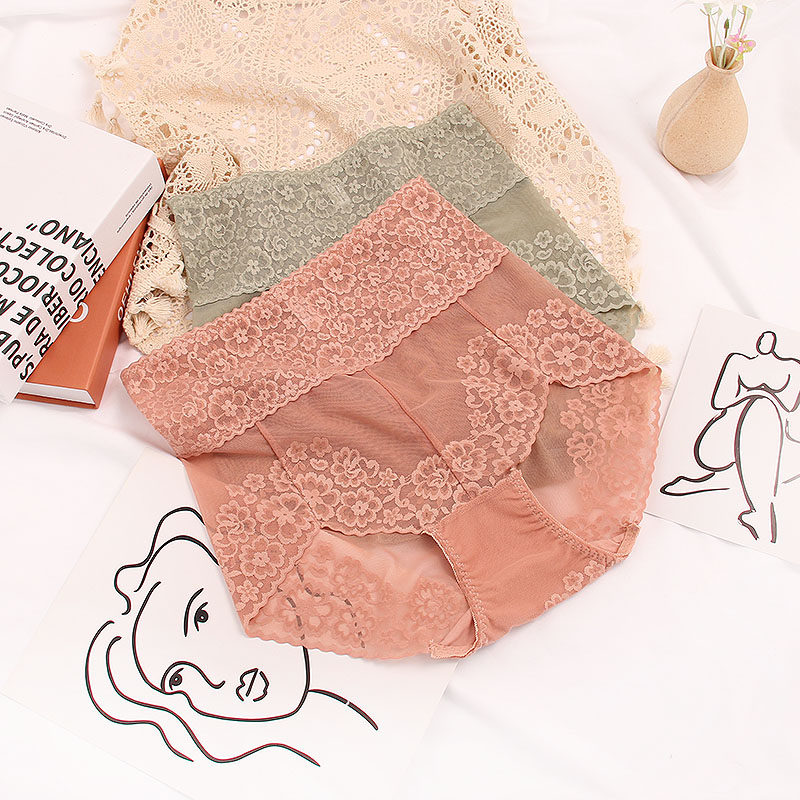 Collection of small belly high waist lace Underpants mesh yarn cotton stalls No marks Sexy Bag Hip Triangle Pants Postnatal Mom Selection