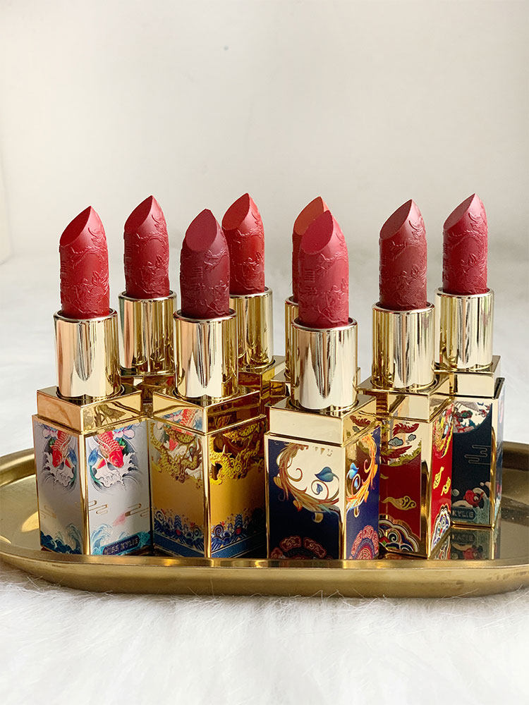 Chinese Wind Palace Carved Flowers Mouth Red Color Makeup Joint Gift Box Clothes Small Crowdbrand Beauty Makeup Kit Box Student Brick Red
