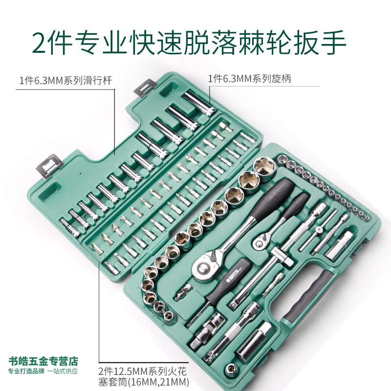 Shida Tool Suit 86 pieces of sleeve wrench set sleeve ratchet wrench suit for steam repair Composition Toolbox 09013