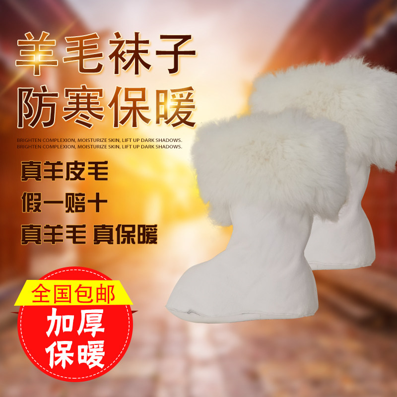 Mongolian Boots Goat Leather Shoes Socks Plus Suede Floor Socks Leather hair One anti-cold and damp wool Snow ground bean stockings Men and women