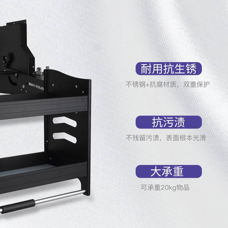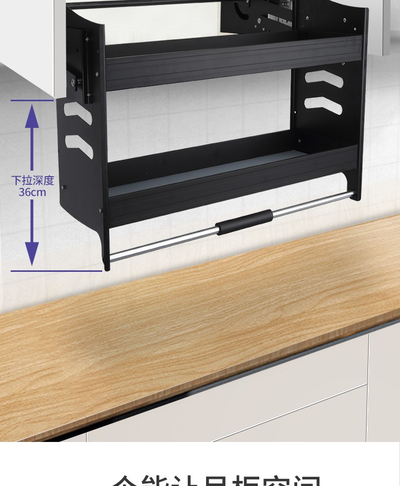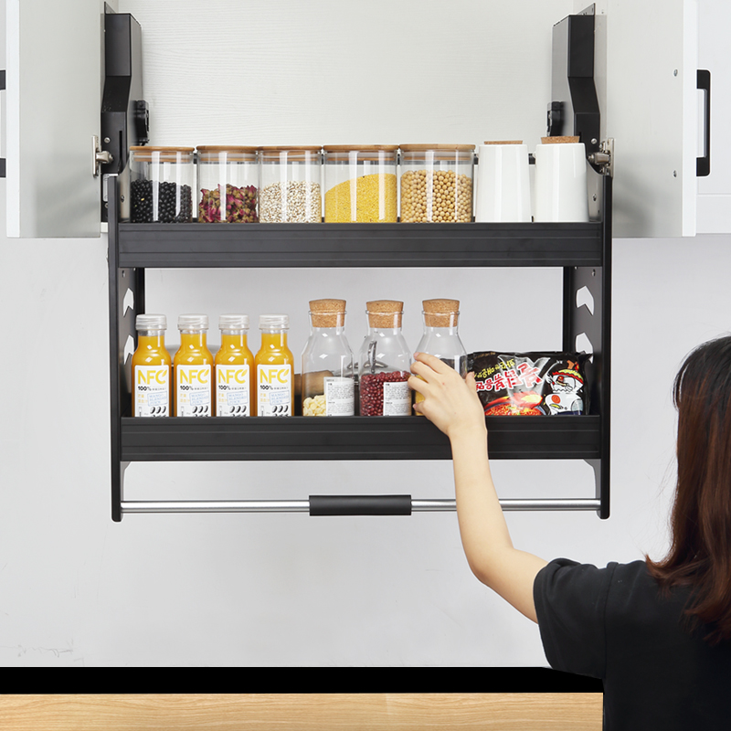 Kitchen hanging cabinet lift basket integral cabinet cushioning damping up and down aluminum alloy seasoning storage shelf blue