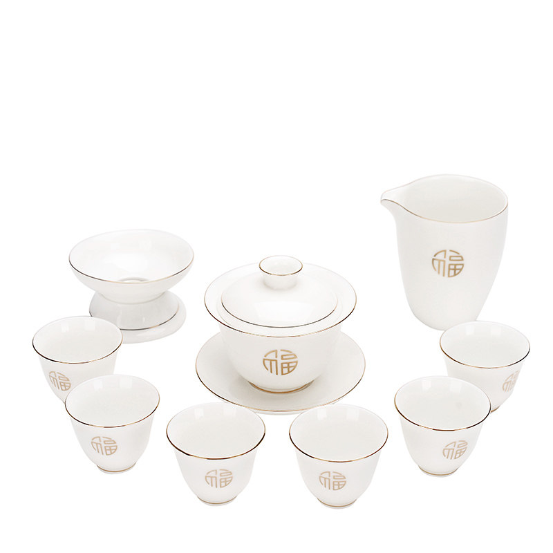 Tea Top Bowl of Tea Cup Ceramic Ary Yu Household with a simple Chinese gift package for the edge of the whole set of jade logo