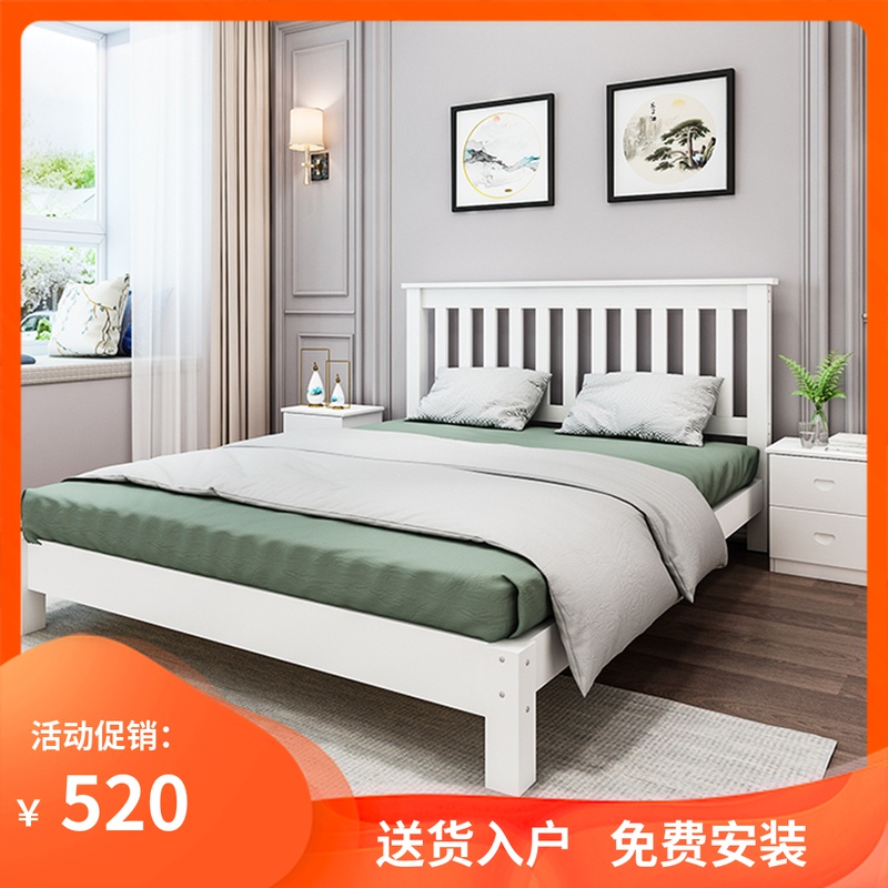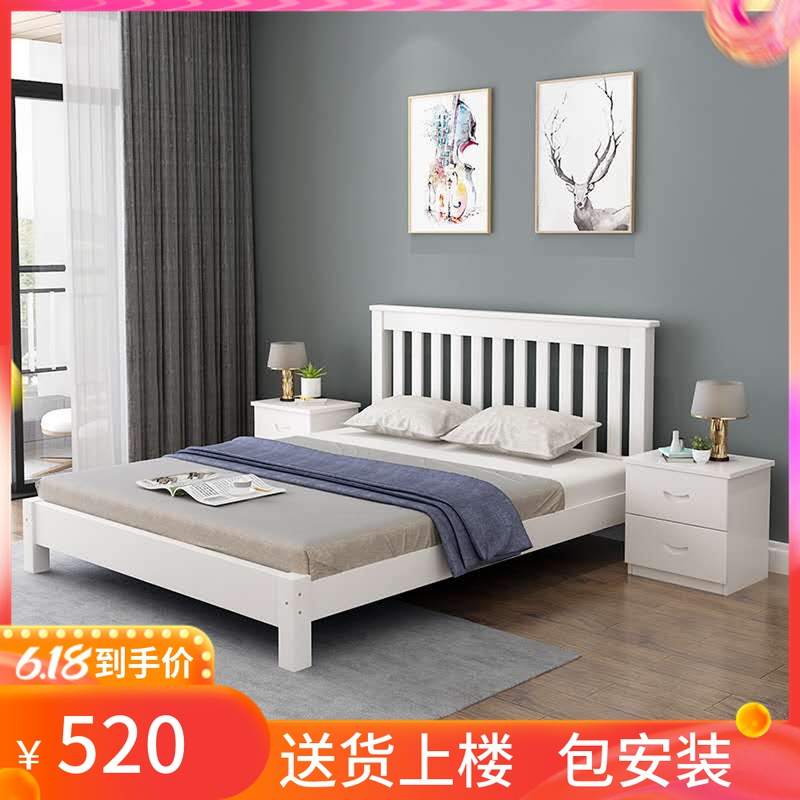 Solid wood bed 1.8m double bed master bedroom American white 1.5m 1.35 single Nordic bed custom made