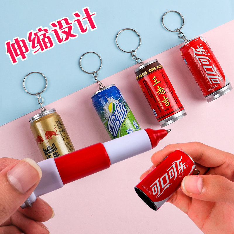 Pop can drink pen telescopic ballpoint pen Mini portable carry cute cartoon creative key button oil pen ad street swing stall sweep code stationery gift small prize gift student