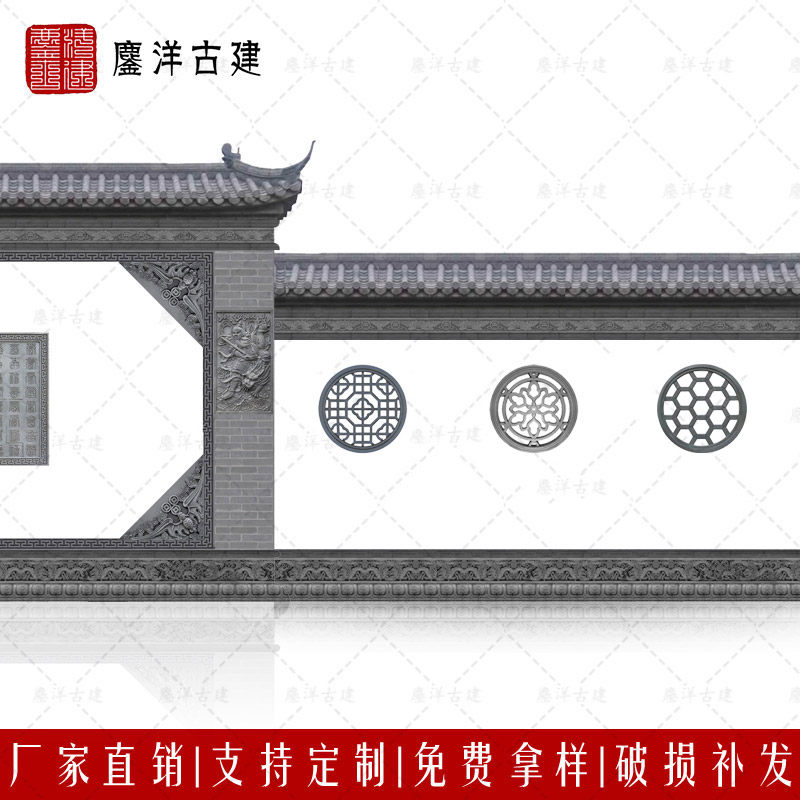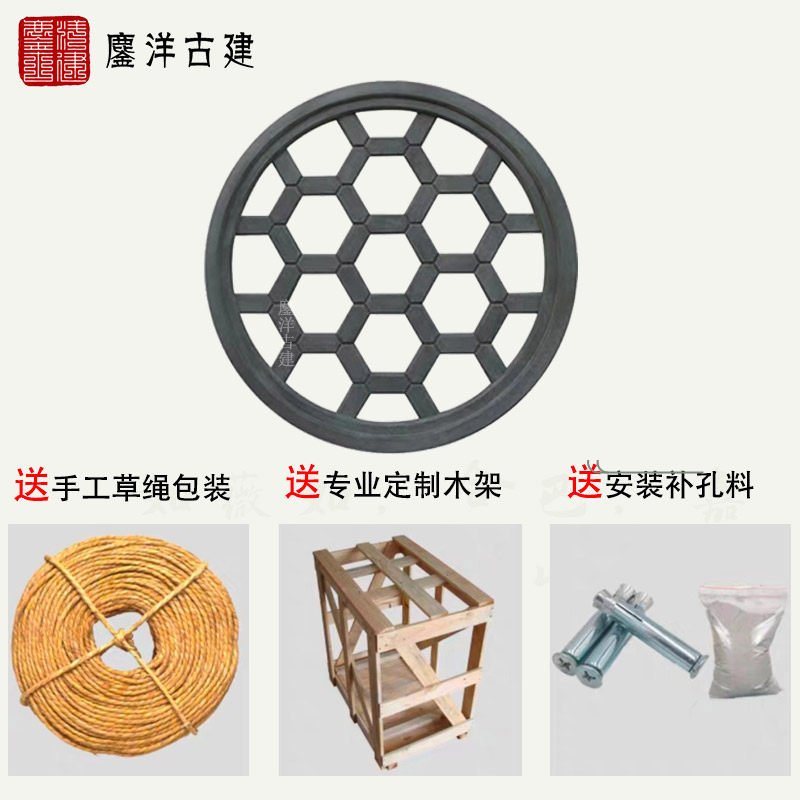 Relief ancient building brick carving Chinese-style hollow round brick carving Siheyuan wall window flower pendant Round hollow flower window