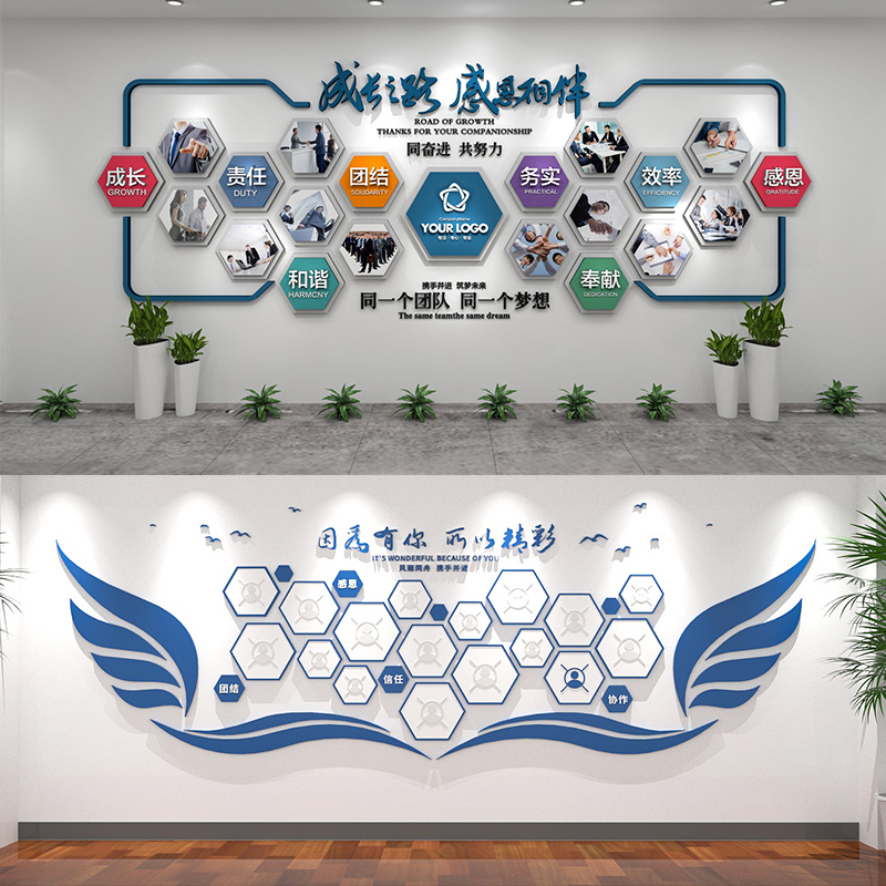 Employee wind wall custom design 3D stereoscopic corporate culture wall team show office photos decorative wall stickers