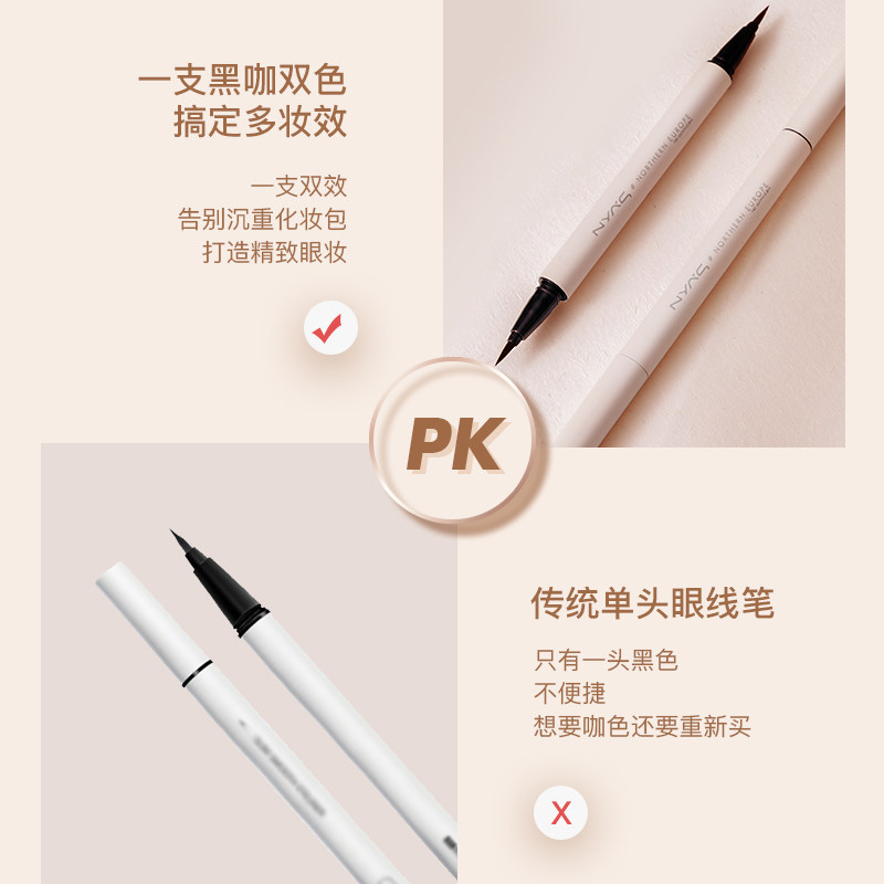 NYAS NYAS NYAS double-head two-color eyeliner pen long-lasting waterproof sweat not dizzying novice beginner female soft head Brown