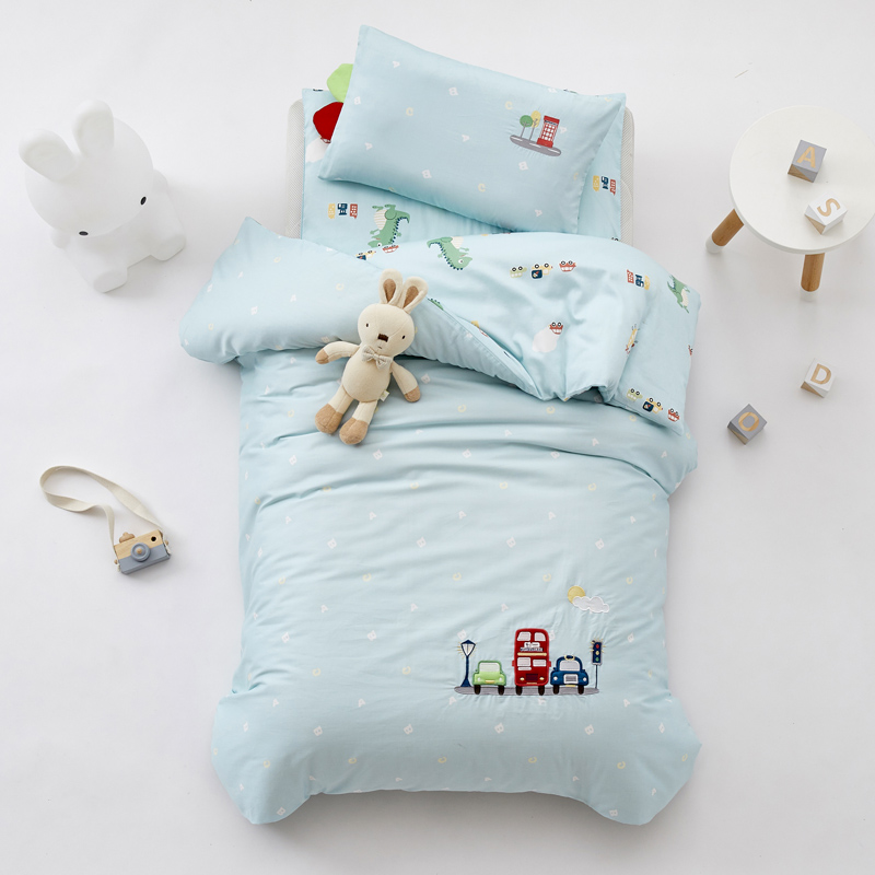 Class A 60s satin children's kindergarten quilt three-piece set pure cotton bedding baby nap bedding six-piece set