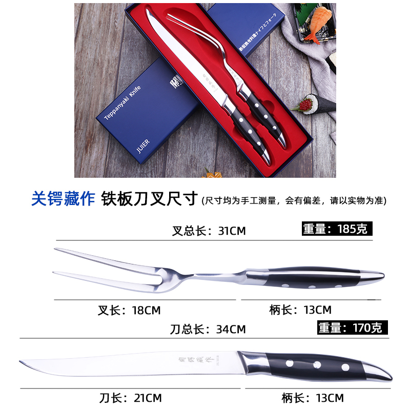 Sekigakura steak knife and fork Commercial fancy Teppanyaki cooking knife and fork thickened barbecue meat Japanese knife and fork Set
