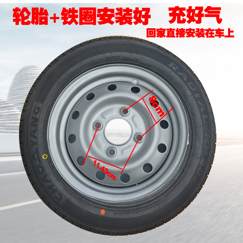 Chaoyang 155 70R13 of vacuum tire gas nozzle Chaoyang yang 155 70R13 silver white iron wheel diagonal 11 43 Chaoyang 155 70R13 black aluminum ring