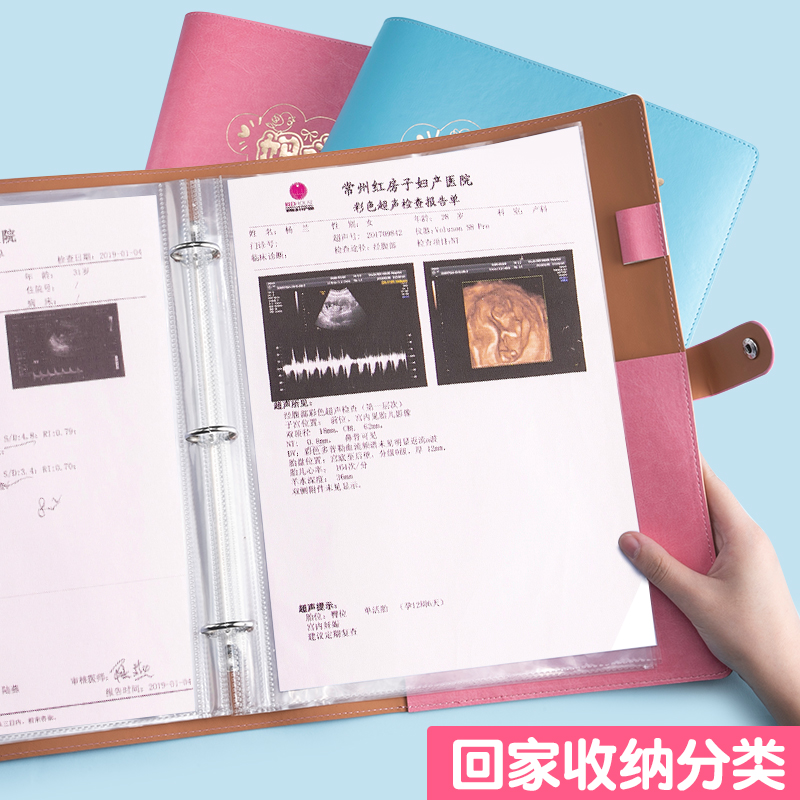 The new version of the pregnancy test report collection book cute portable pregnant mother outfit B-ultrasound pregnancy check collection information book loose-leaf a4 large-capacity multi-functional pregnant women's birth check file record folder 20