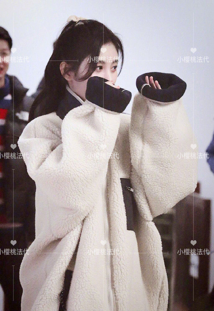 Cherry French maje Ju Jingyi same lamb wool coat 20 winter stand collar grain velvet loose thickened coat