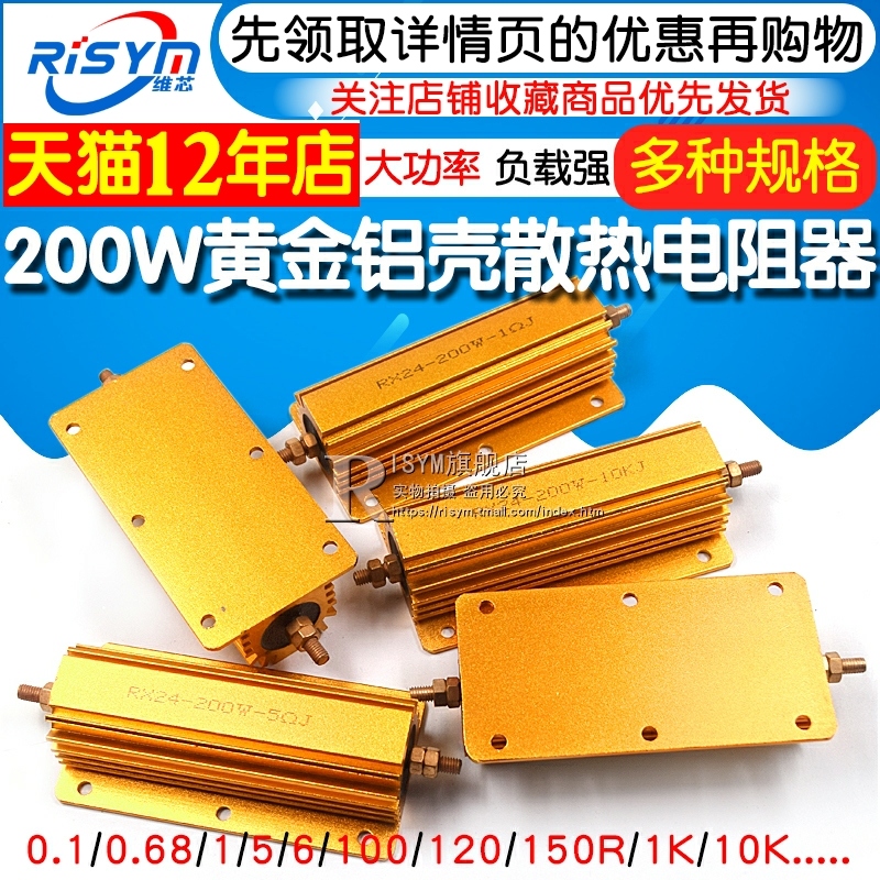 RXG24-200W High Power Gold Aluminum Shell Heat Dissipation Resistor Limited 0 1 1 5 0 50100 1 50100 au 2K