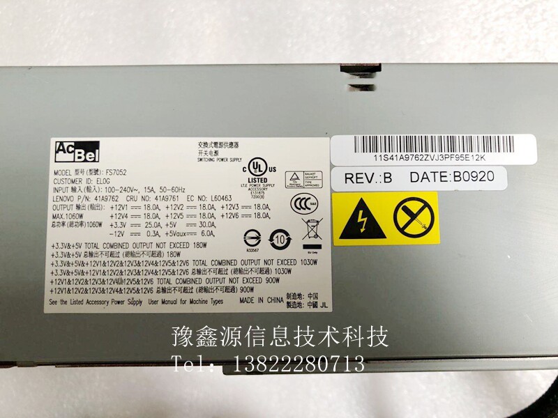 Lenovo D20 workstation power DPS-1060AB FS7052 41A9762 41A9761 1060W