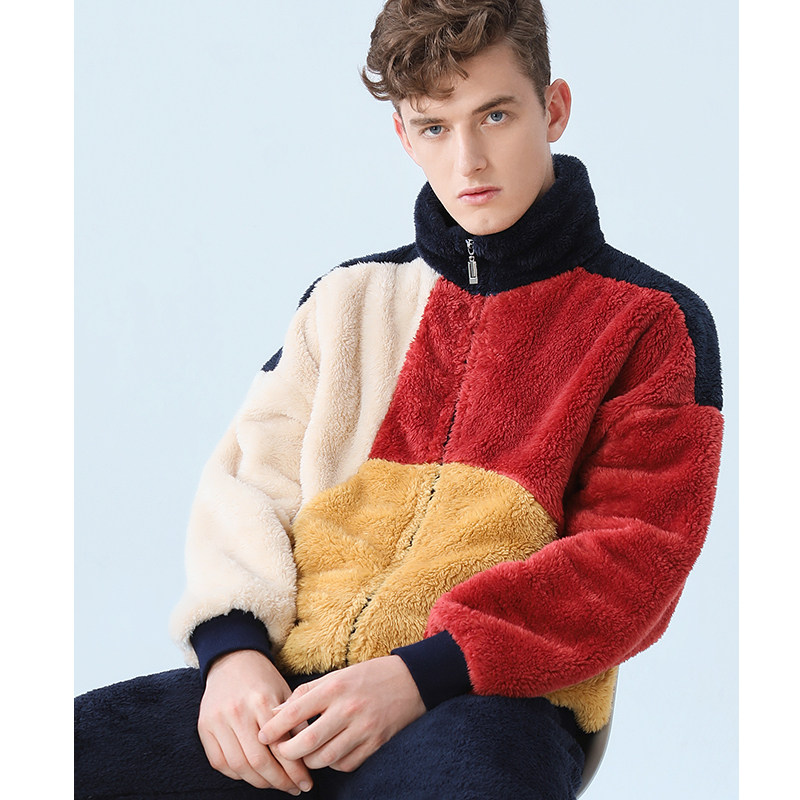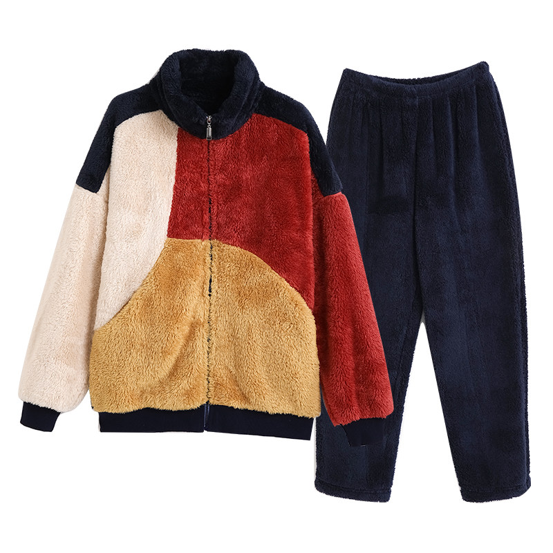 IIZZINI 2021 pajamas men's winter long-sleeved coral velvet thickened flannel warm color homewear suit