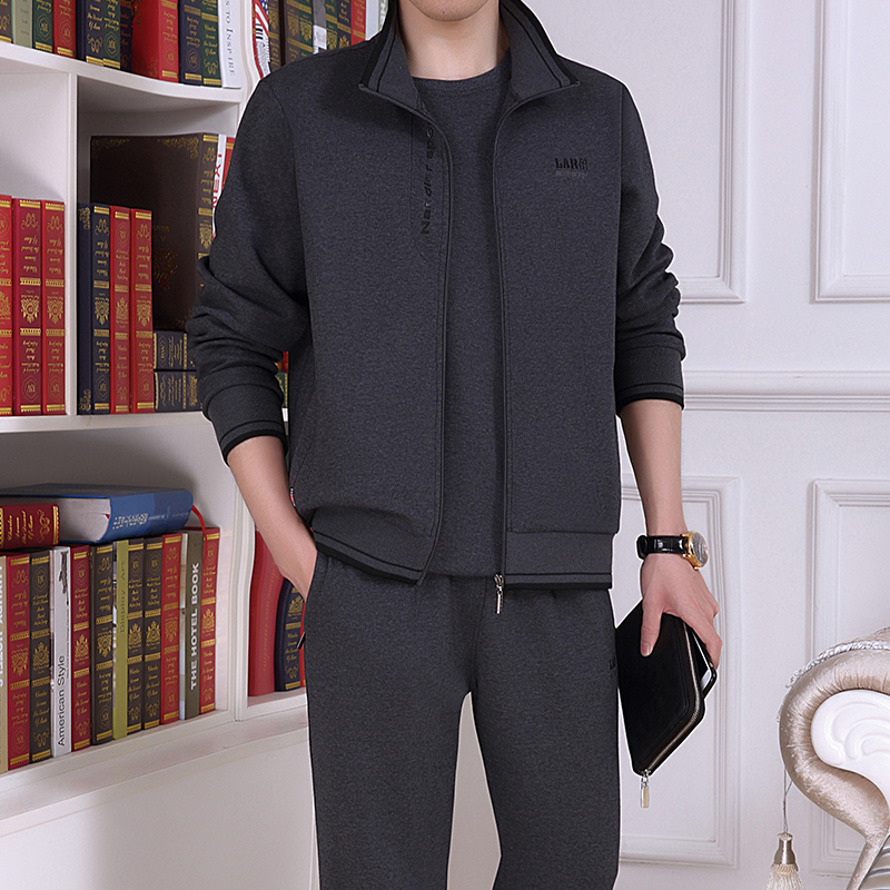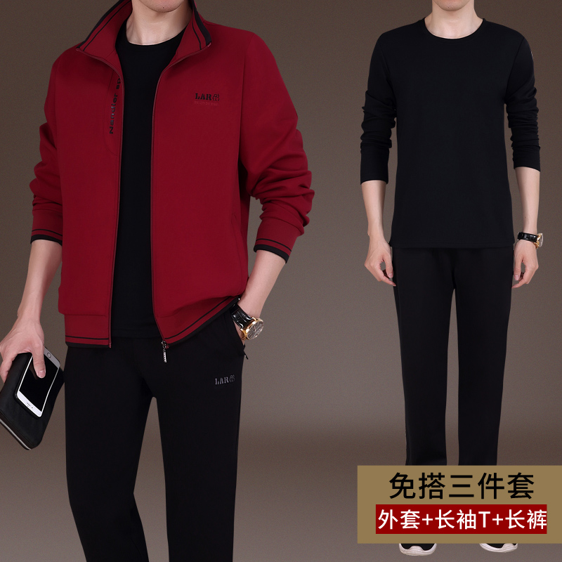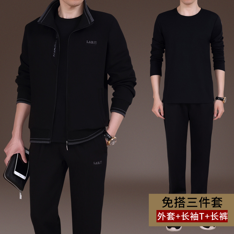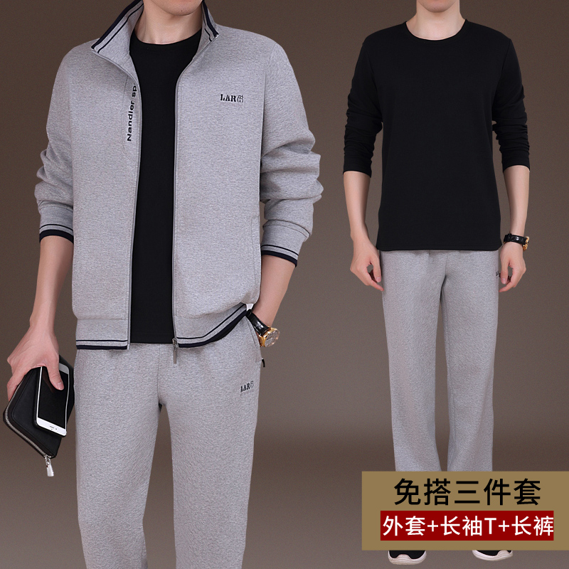 Spring Fall Men's New Casual Suit Pure Cotton Sports Dad Clothing Middle Aged Running Outsuit Pants Three Sets