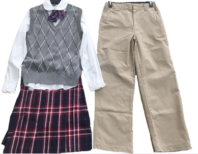 T-shirts (same style for men and women) girls short-sleeved girls long-sleeved girls plaid skirt girls navy skirt boys khaki five-point pants boys short-sleeved boys long-sleeved men's and women's khaki trousers wool vest