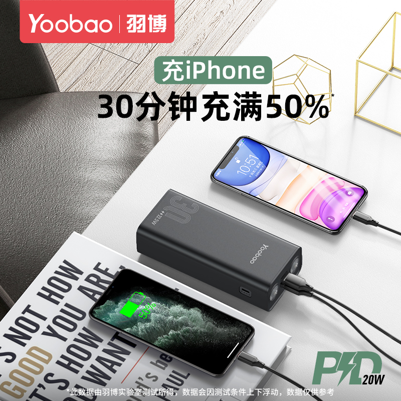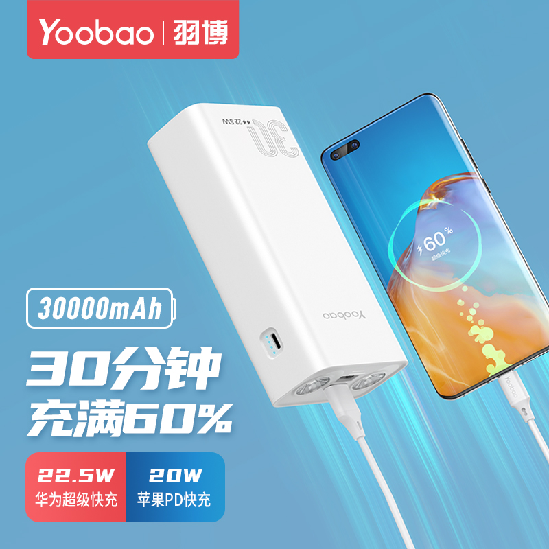 Plume PD bi-directional fast charging mobile charging large capacity 30000 mAh 22 5w suitable for iPhone Huawei Honor oppo Apple vivo Xiaomi mobile phone flashlight action electric