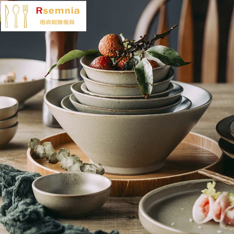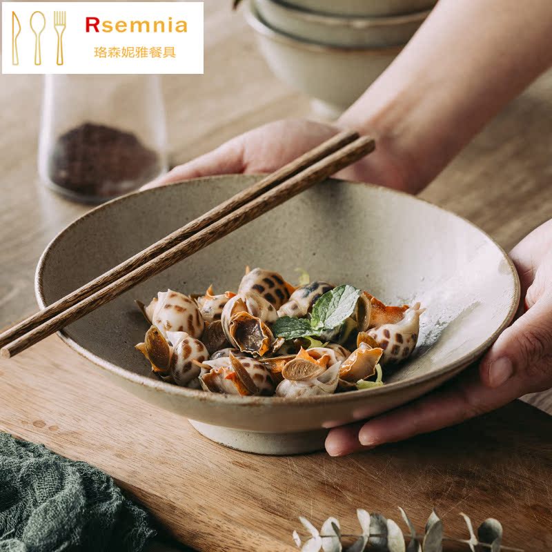 Rsemnia Japanese tableware Vintage coarse pottery dish set Household Chinese tableware underglaze color Jingdezhen handmade