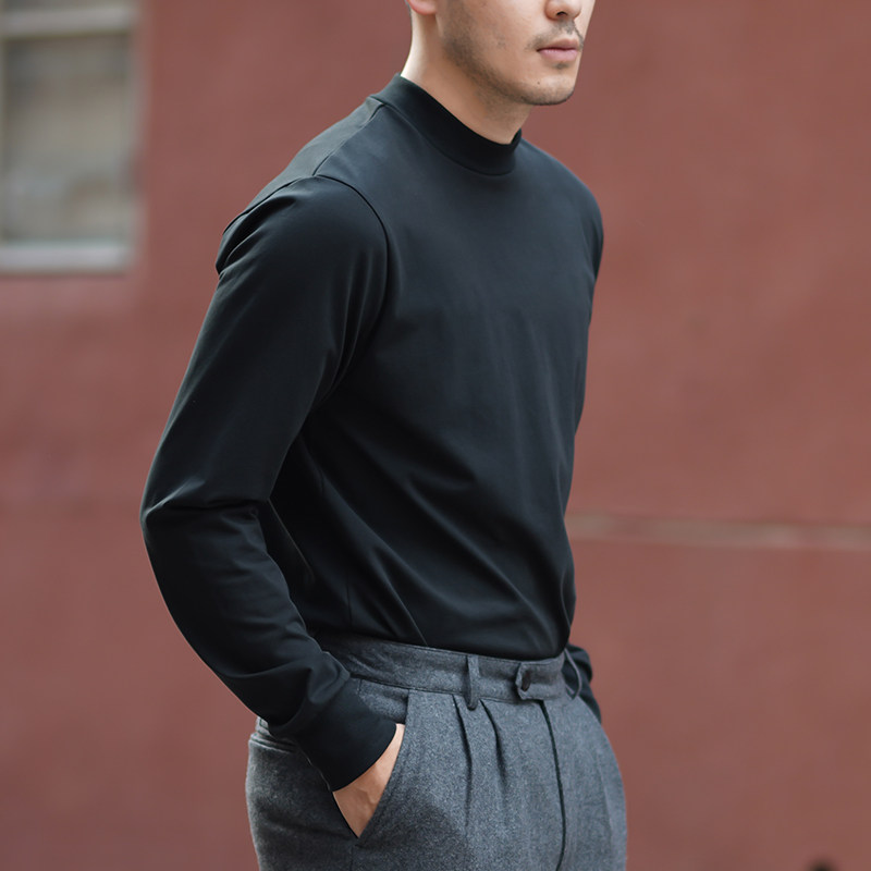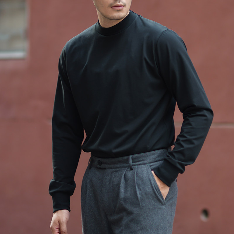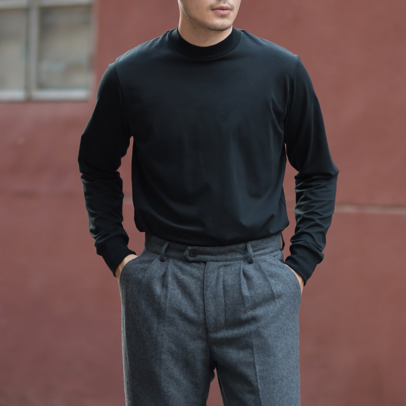 Vintameri American vintage retro lbs 330g trimmints for men pure colour Pima cotton small high collar Long sleeves Nets