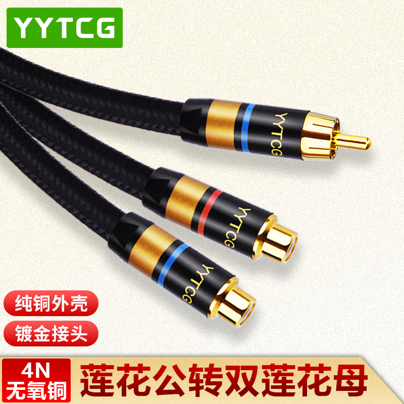 Lotus head one point two RCA to 2rca subwoofer line single lotus male to double lotus male and female DSP modified transfer audio cable male to female to male video converter signal line