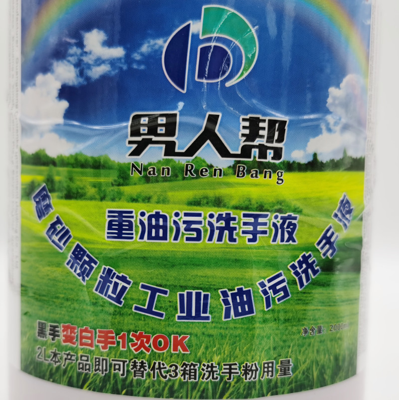 Men help industrial hand sanitizer, hand powder, sand to remove heavy oil, washing machine oil, abrasive particles, car repair technicians, large barrels