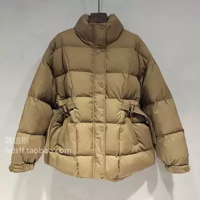 2020 winter clothes solid color Korean version loose bilateral drawstring waist thin stand-up collar down cotton cotton jacket quilted jacket female