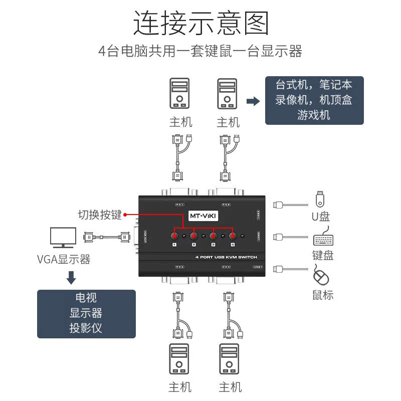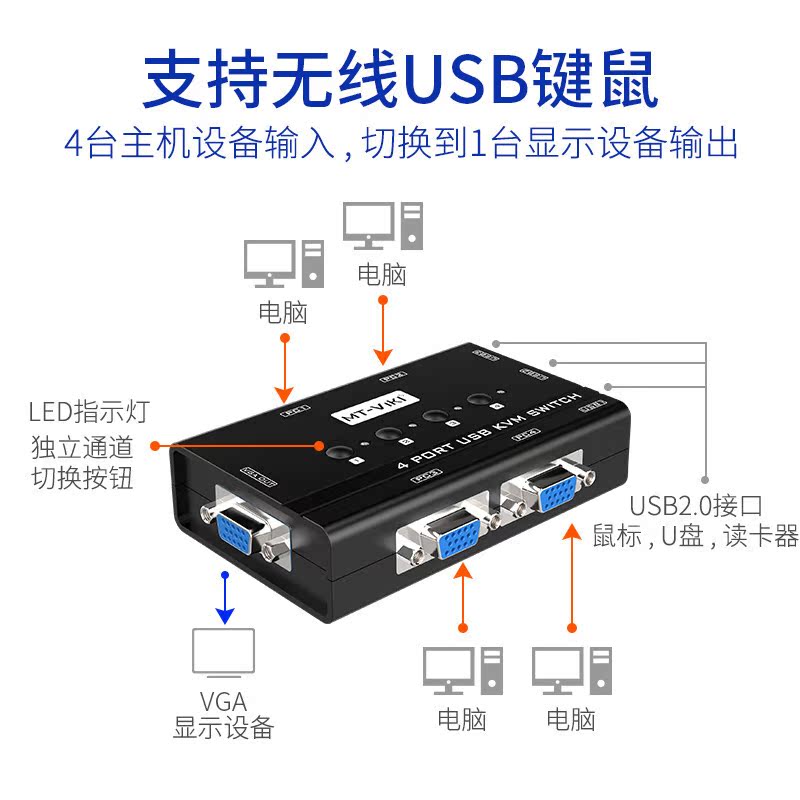 Maituovimoment MT-460KL KVM switcher 4 ports VGA4 in 1 out 4 computer key rat display Share