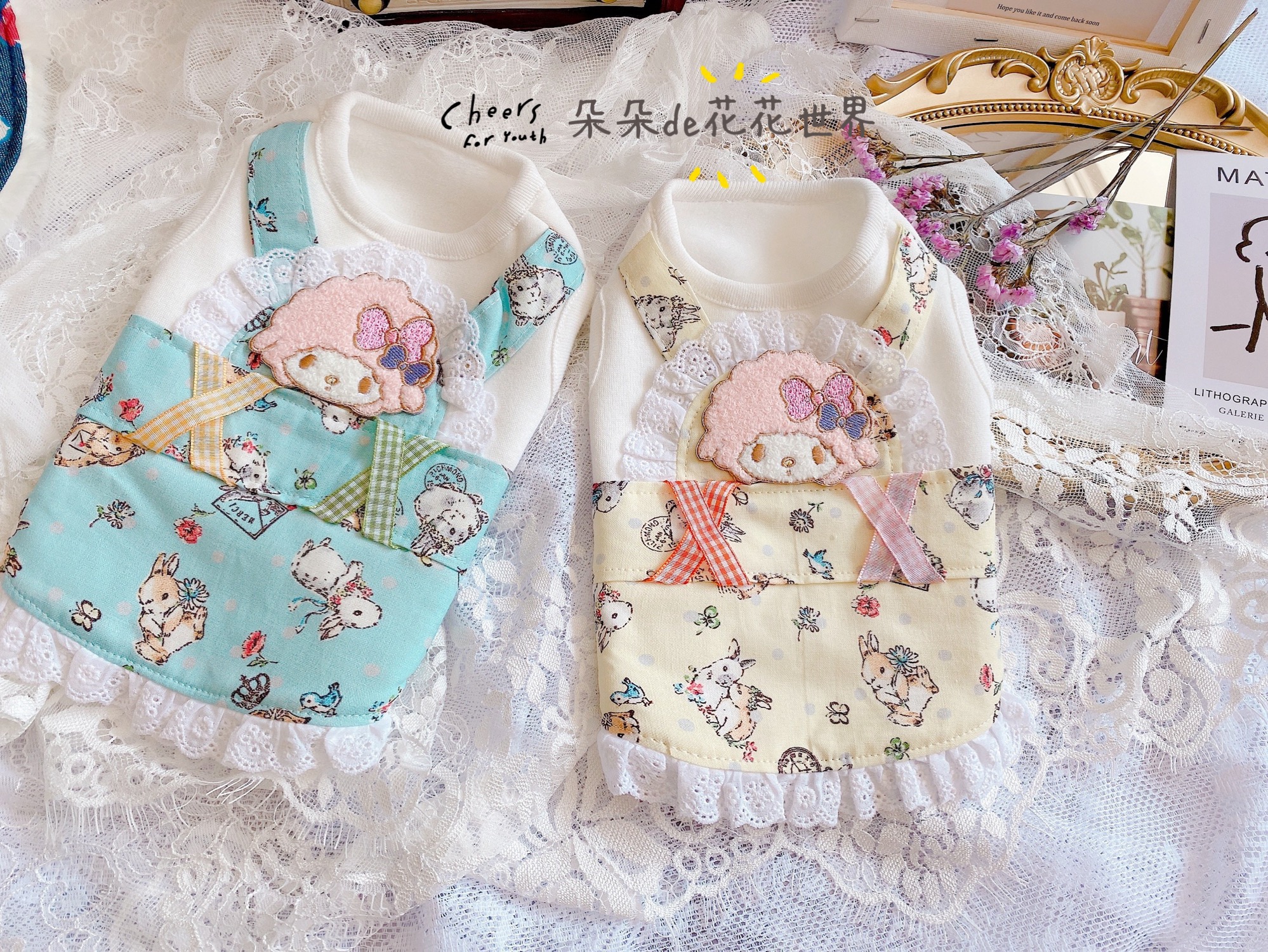 J Pet Dog Clothing Cat Teddy Bomeyokshia Pompeo Imported Fabric Cartoon plus Two Pieces