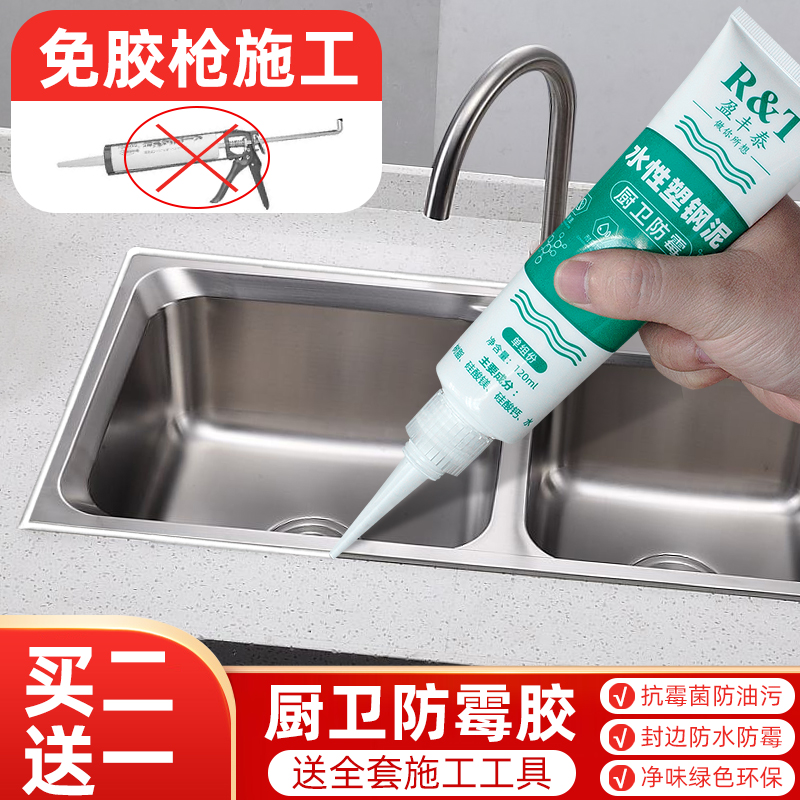 Plastic steel mud glass glue Waterproof mildew kitchen and bathroom transparent edge sealing toilet Kitchen sink Household door and window sealant
