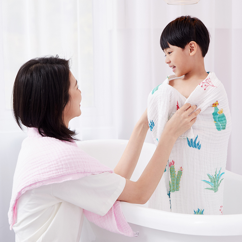 Jie Liya baby bath towel pure cotton gauze big towel Newborn baby household cute bath towel children's quilt