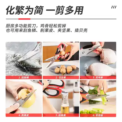 Deli multi-function kitchen scissors household fish killing special scissors chicken bone barbecue large stainless steel strong scissors