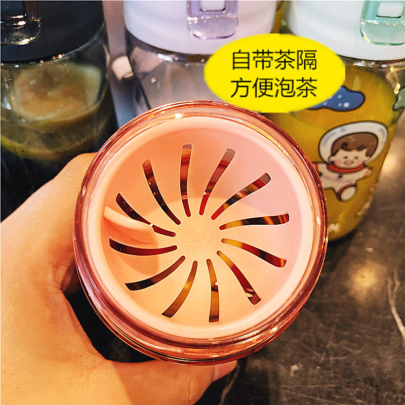 Korean version of simple sports with tea compartment plastic cup male and female students portable couple water cup forest fresh and handy cup