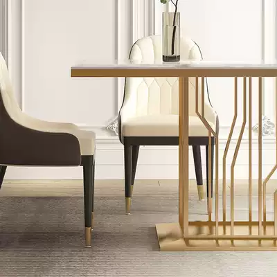 Marble light luxury style modern simple dining table household small apartment Nordic rectangular stainless steel rock plate rice table