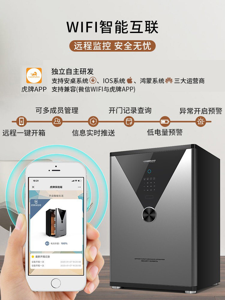 Tiger safe home small wifi intelligent control 60 70 80 1 meter fingerprint safe all steel anti-theft invisible bedside mini wall wardrobe password office file large commercial family
