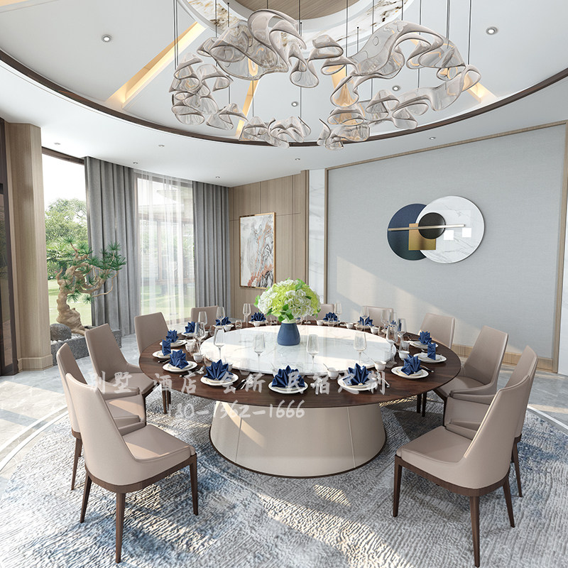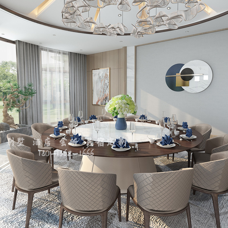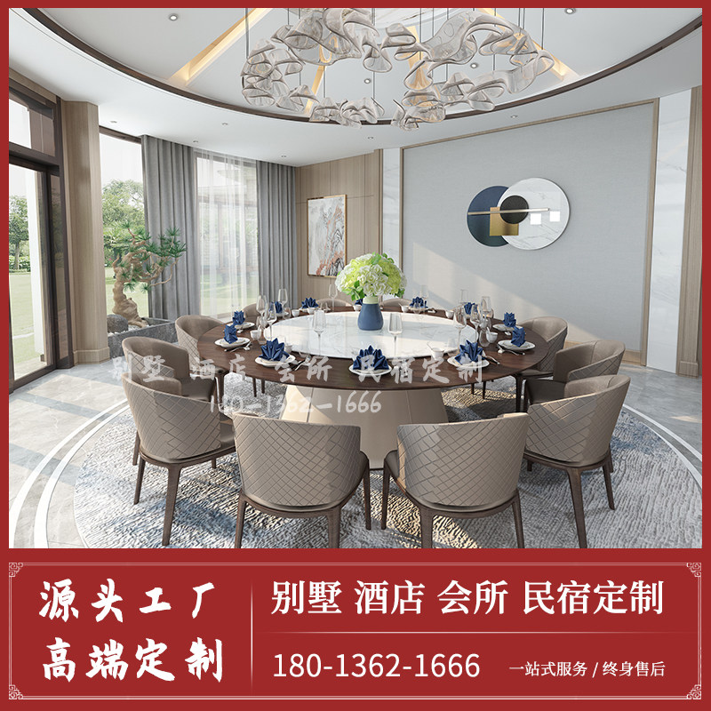 New Chinese hotel electric large round table 15 20 people club hotel box Marble dining table and chair combination