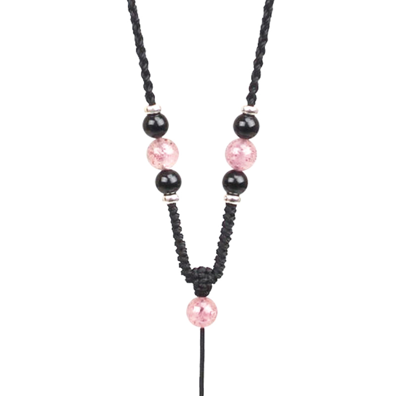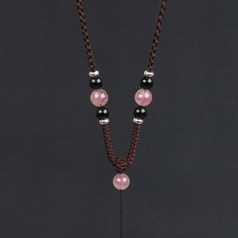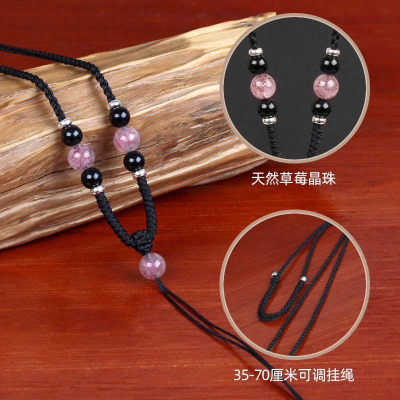 Pure hand-woven 2mm thin men's and women's natural strawberry crystal necklace pendant hanging rope adjustable