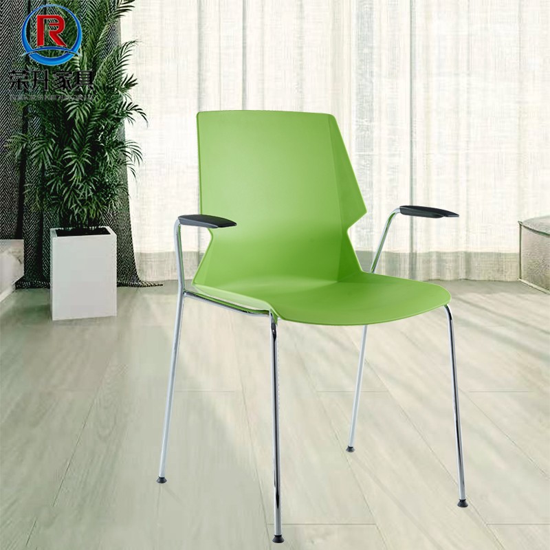Handrail chair Iron four-legged stackable training convenient conference chair comfortable sedentary PP green chair