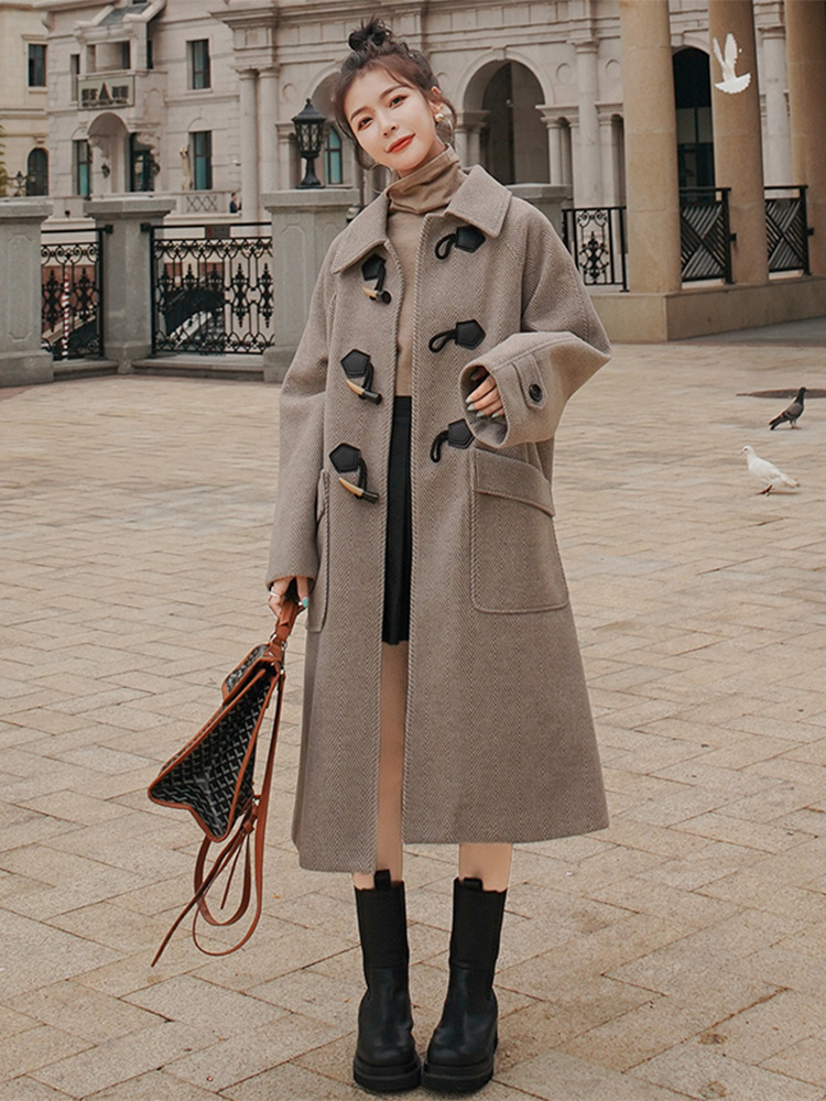 Lecea Alice cashmere dresses mid-2022 Winter new high-end horns buttoned with fur coats women
