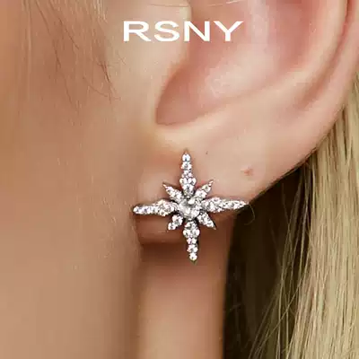 RSNY snowflake earrings female sterling silver small simple French Net red temperament niche design sense earrings
