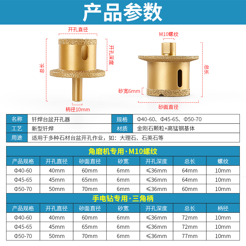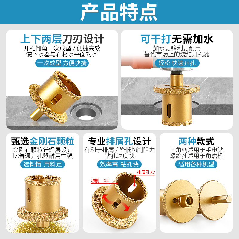 Taiwan porous porous water pipe sink drilling marble ceramic tile face basin diamond double-layer punching drill