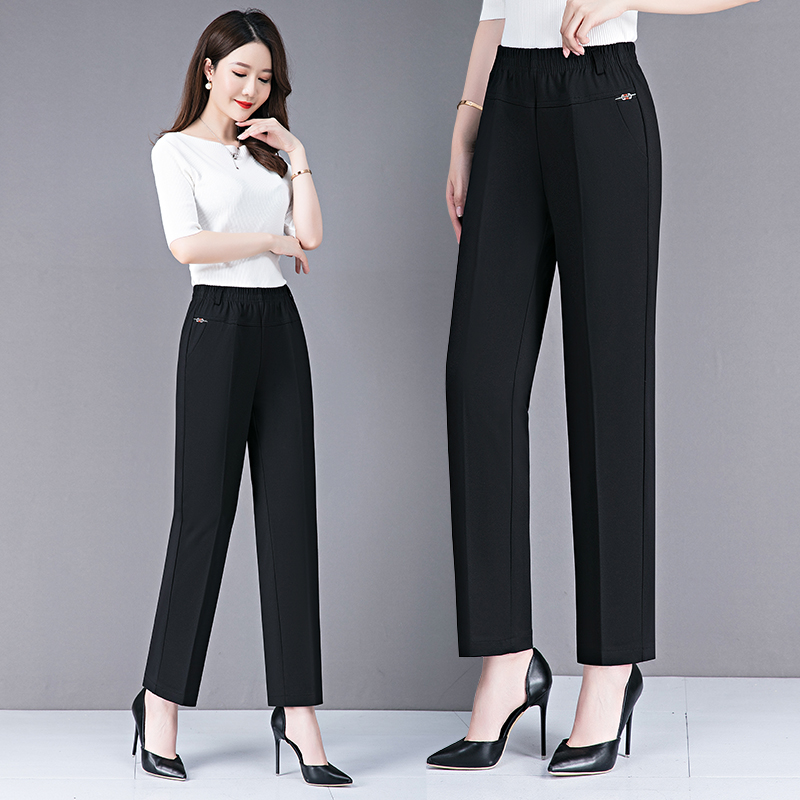 Mom pants 2022 spring and autumn high-waist stretch large size middle-aged and elderly women's pants casually wear loose straight pants