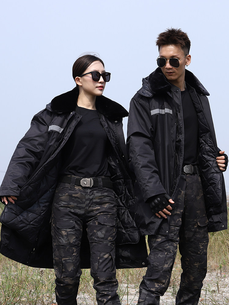 Reflective striped cotton coat men's mid-length version thickened cold-proof warm waterproof security cotton coat cotton clothes women