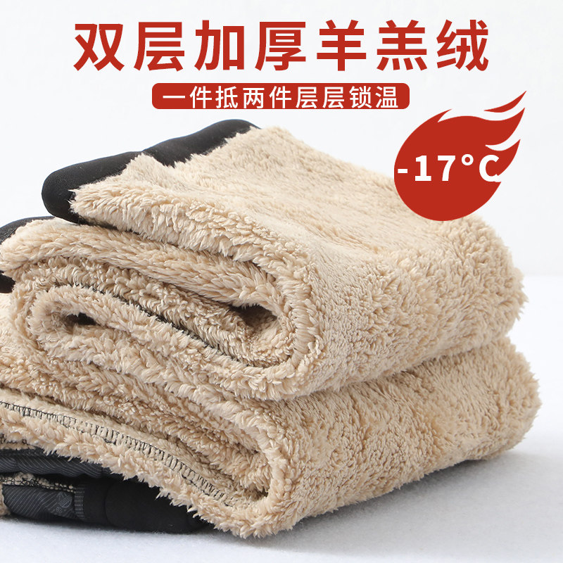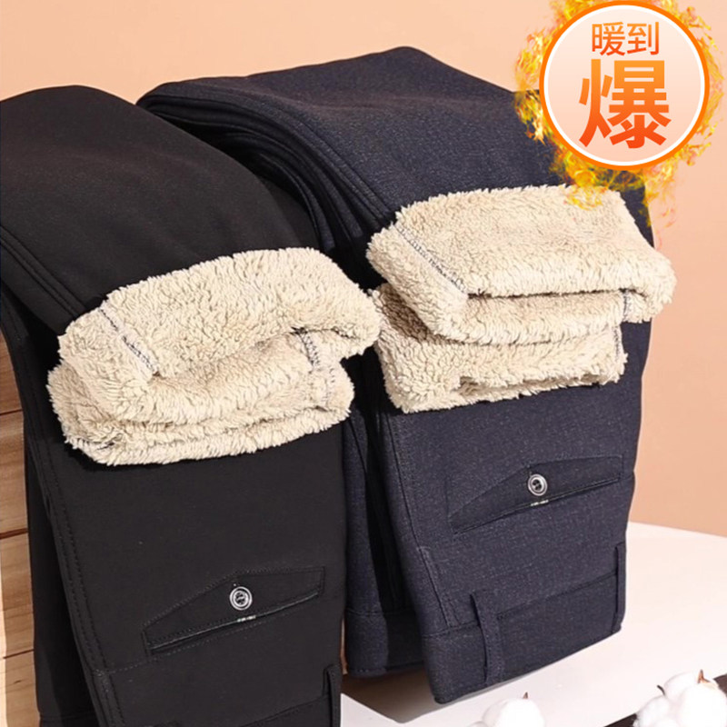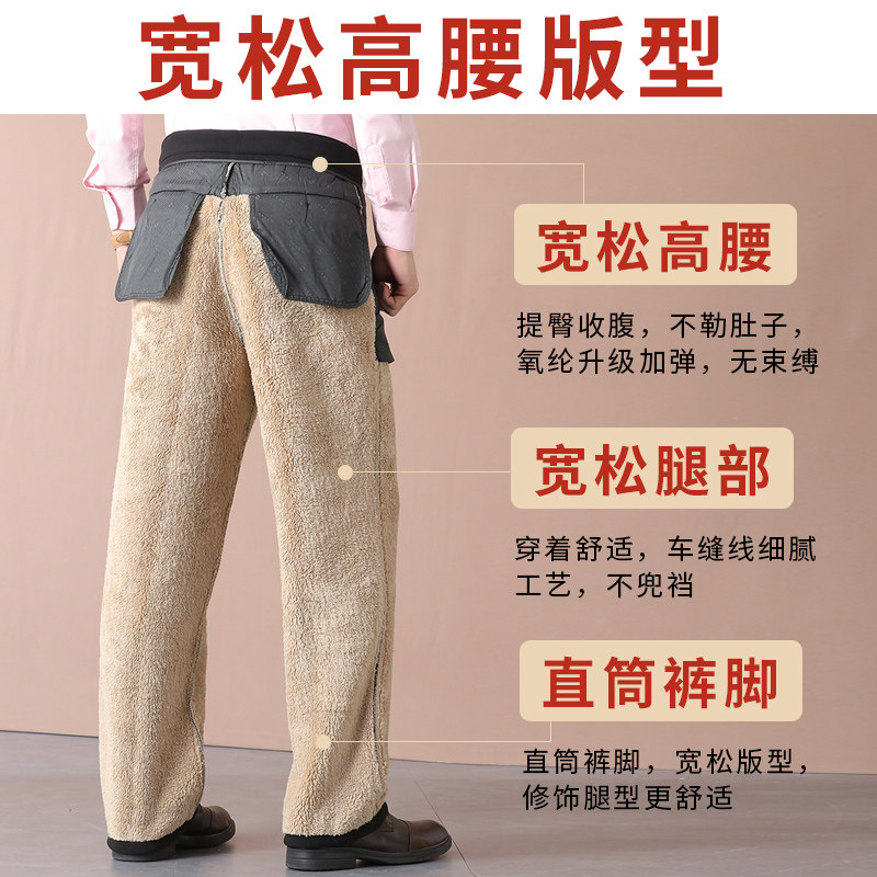 Lamb suede winter outwear plus suede thickened Middle-aged Pants Men's Dad Winter Clothing Seniors Men's Casual Pants-Taobao