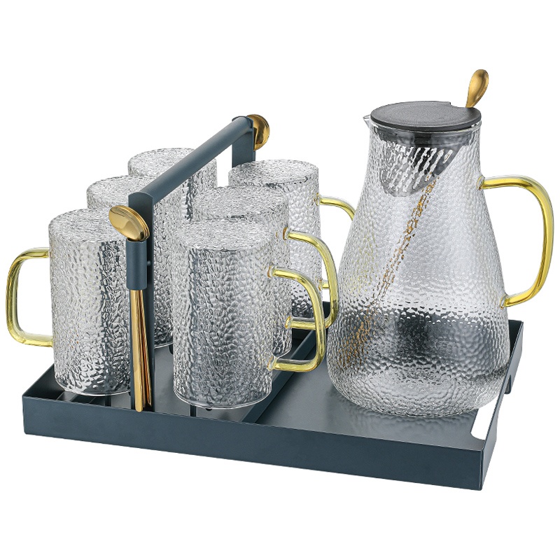 Hammocks (6 cups) hammered (6 cups of matching blue cup stand) hammered (6 cups of matching gold cup stand) hammered (1 jug of 6 cups with iron care tray) hammered (1 pot 6 cups of matching wooden depository) hammered (1)