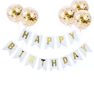 Happy birthday hanging word pull flower ◆ Simple European and American style birthday hot stamping flag festival decoration pull flag gold silver bright