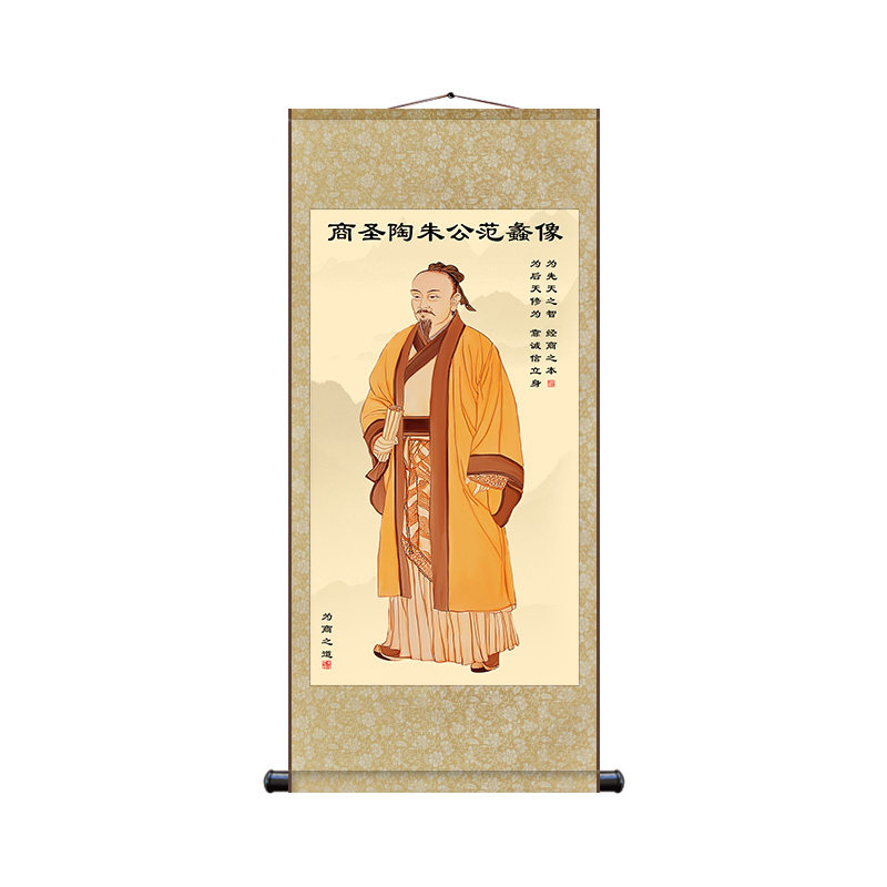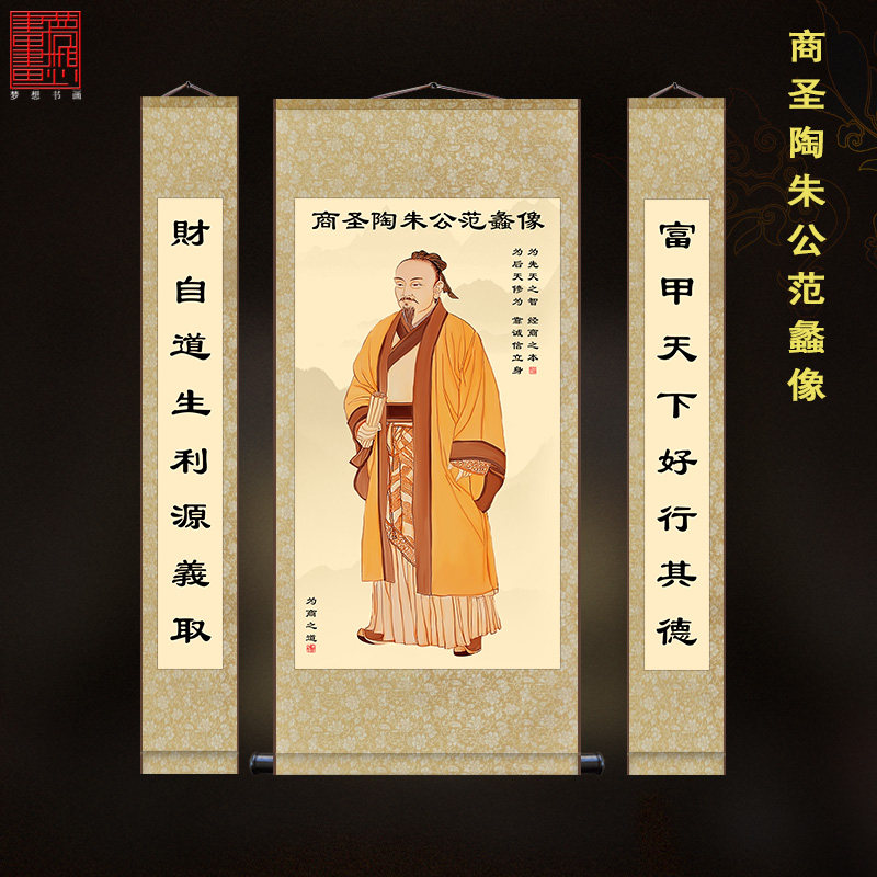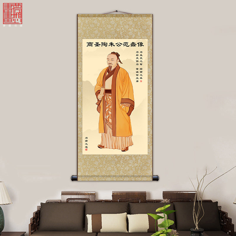 Ancient Shang St. Fan Li's portrait Tao Zhu Gong Triple Zhongtang hang painting Caijing business via Feng Shui Xuanguan Decorative Painting